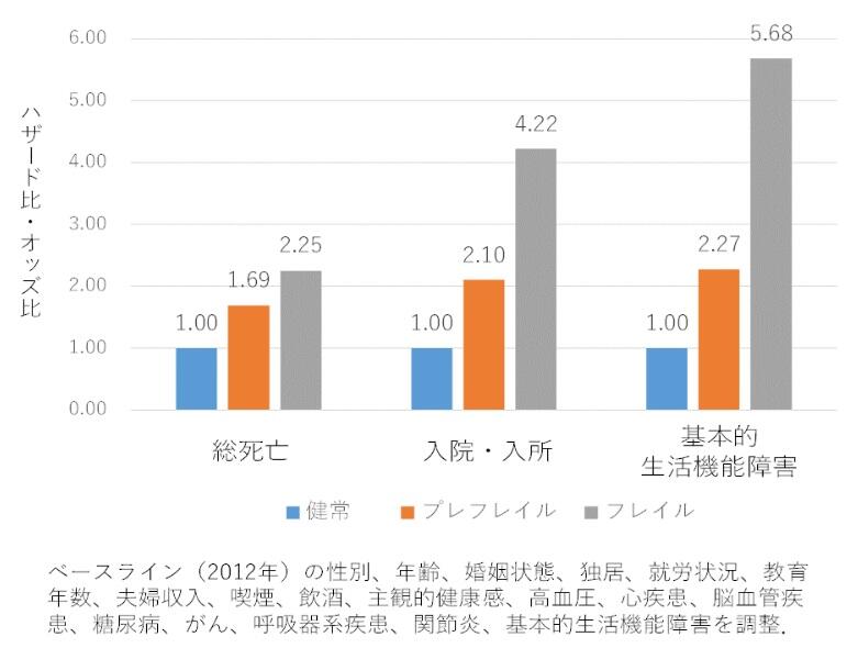 研究チームでは「全国データを用いても、やはりフレイルは将来の死亡や生活機能障害の発生につながりやすいことがあらためて示されました」と言及。