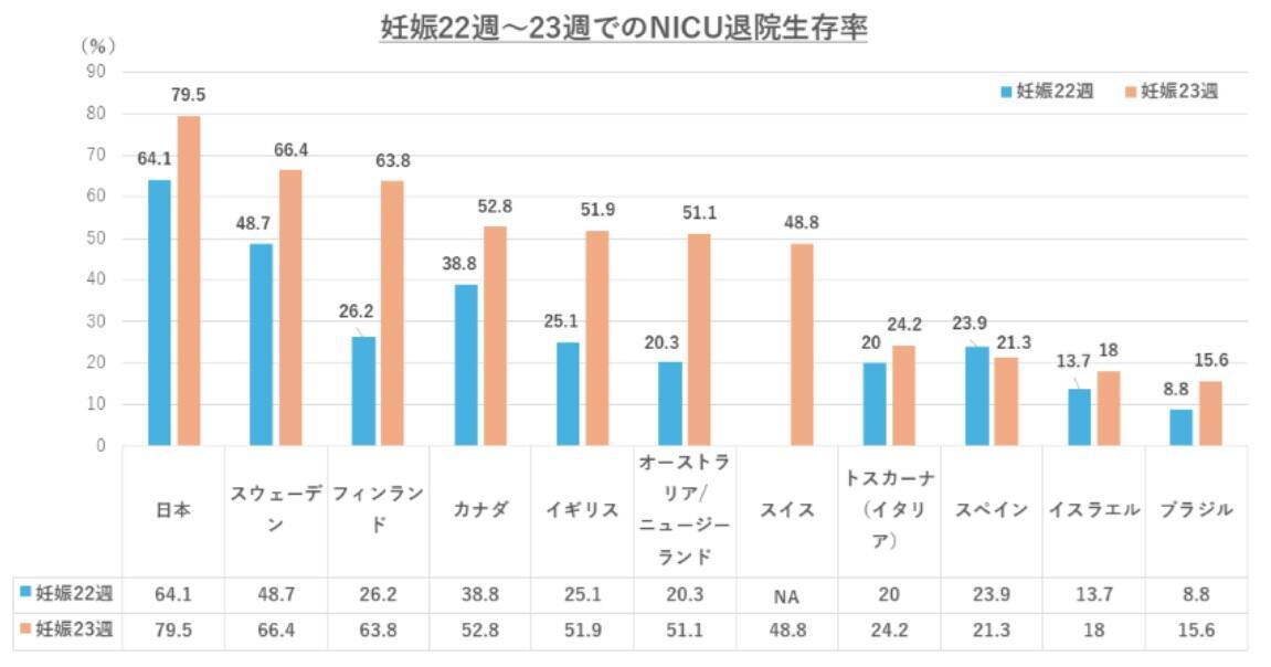 その結果、国や地域によって大きな差がある中、日本は妊娠22週~23週でのNICU (新生児集中治療室)退院生存率が最も高いことなどが明らかになった。