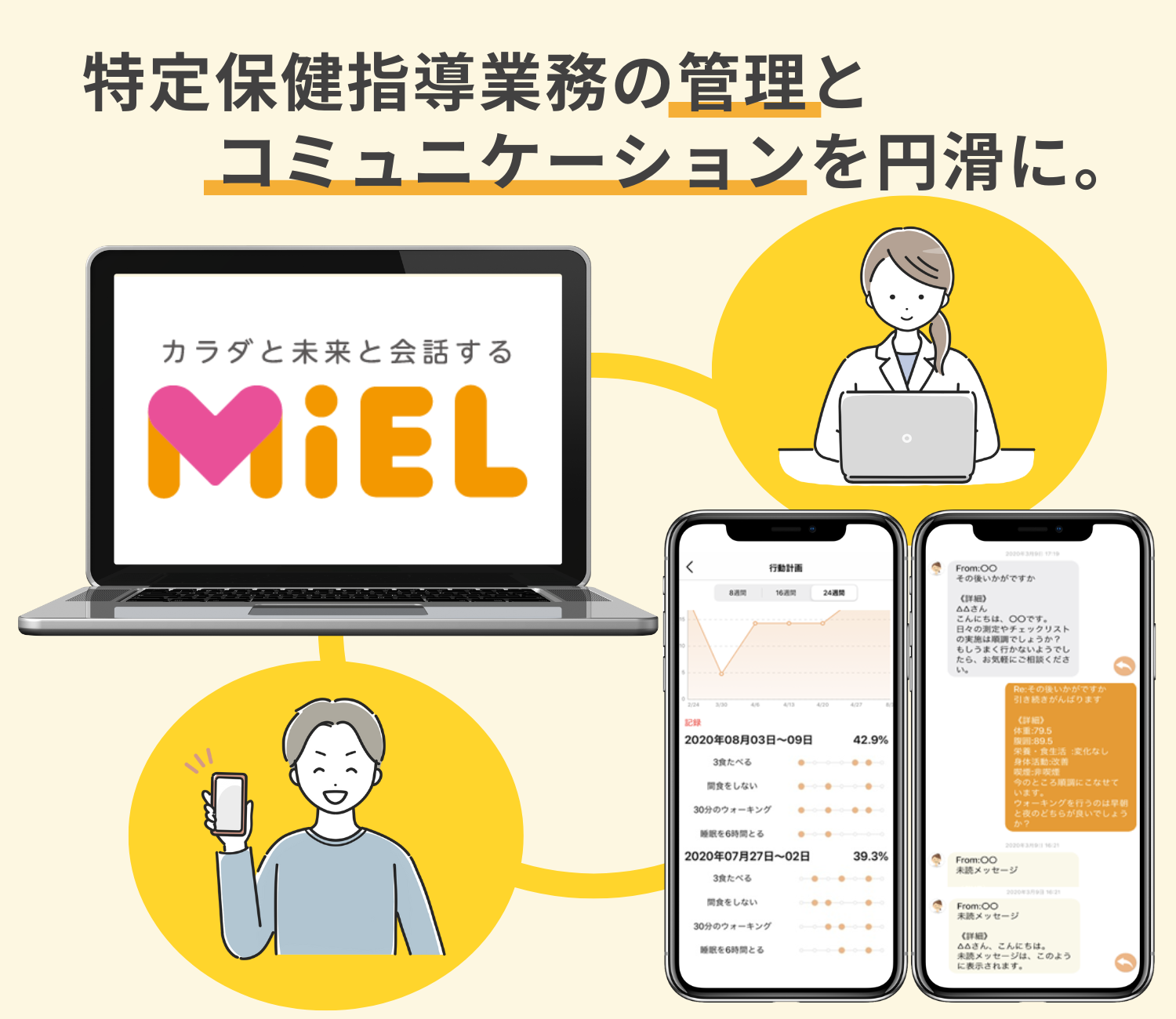 厚労省の特定保健指導プログラムに準拠しており、一連の業務管理はもちろん、スマホアプリによるセルフモニタリングや対象者とのスムーズなやり取りにもぴったりです。